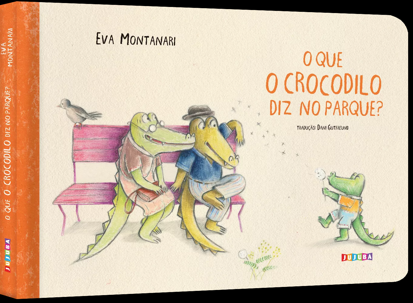 Num passeio com os avós, o pequeno crocodilo passará por aventuras do universo dos bebês – a chegada dos avós para o passeio, a descoberta de uma flor, um passarinho que voa, até a hora mais esperada: a divisão de um brinquedo. E tudo com onomatopeias, que possibilitam, a cada virar de página, uma imersão em um universo da brincadeira.